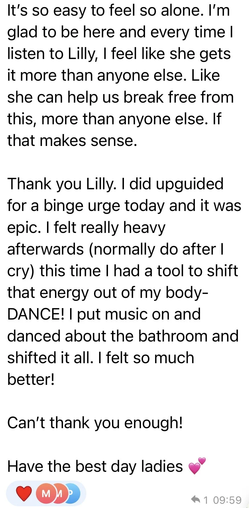 And thats why, alongside healing emotional eating, clients report decreased anxiety, overwhelm, self criticism & insecurity, and increased confidence, self worth, vitality, peace, and overall wellbeing, plus an inner experience of lightness, spaciousness and empowerment.
